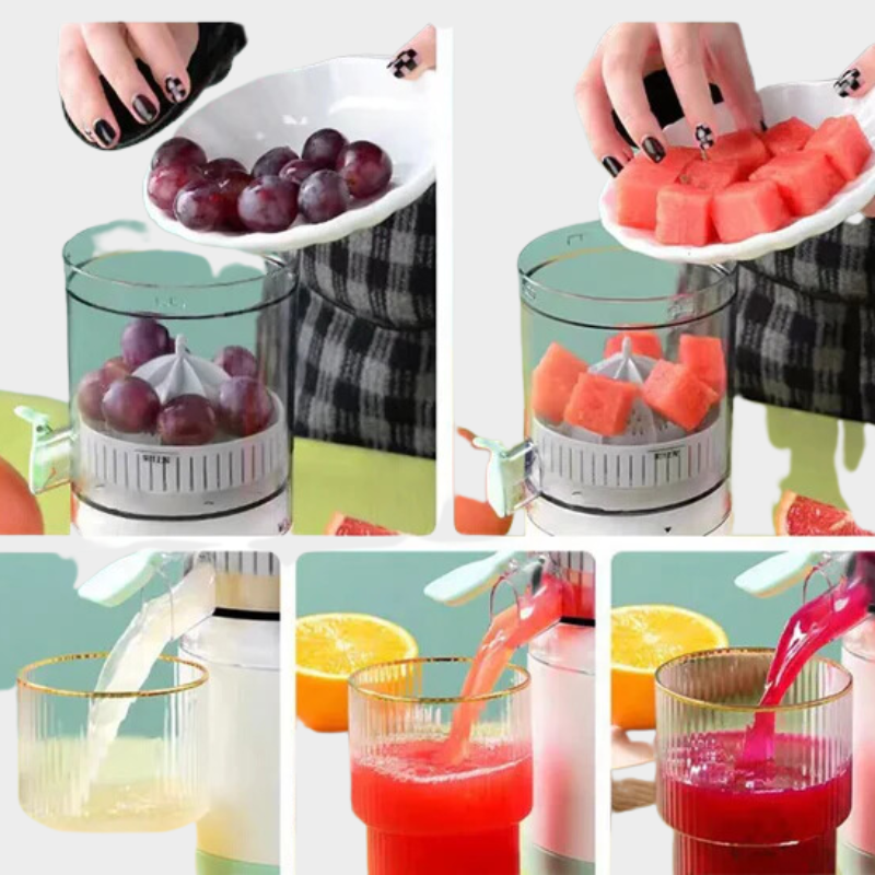 Exprimir tus frutas ya no será un esfuerzo. Este revolucionario exprimidor te permite disfrutar de jugos llenos de vitaminas en cuestión de segundos, sin necesidad de pelar ni presionar la fruta.